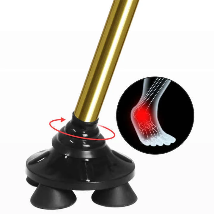 Алошено телескопично пешеходно полюс, квадратна основа го прави самостоятелен бастун, който елиминира падането или изпускането на пода. След като затегна бастунът се изпълнява като твърда твърда бастуна.