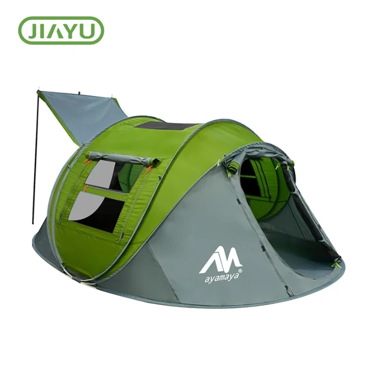 Автоматична бърза отворена палатка за къмпинг, изскачащата палатка разполага с тавански прозорец, толкова е романтично да се наслаждавате на звездното небе през нощта. Zhejiang Jiayu Outdoor Products Co., Ltd., капандурата е оборудвана с подвижен водоустойчив капак, без притеснения в дъждовни дни.