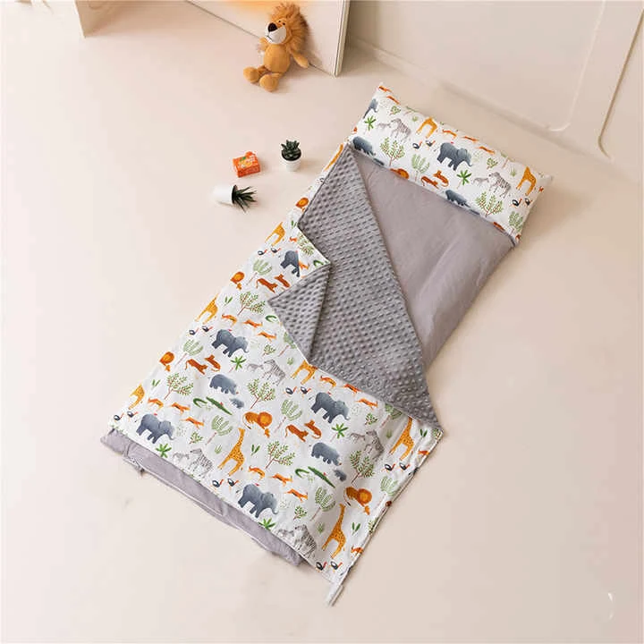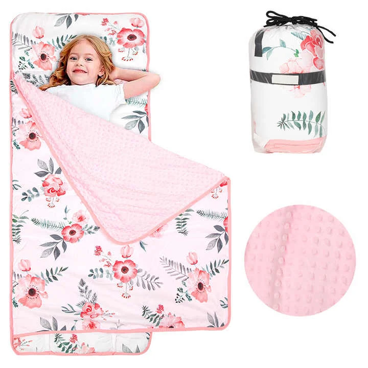Blue Toddler Camping NAP чанта Дизайнът на Rollup позволява на постелката да пътува с лекота, както и удобните каишки за закрепване на затваряне и дръжката за носене.