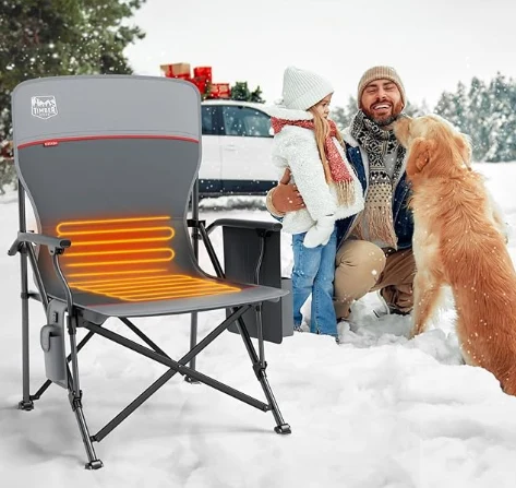 Персонализиран отопляем сгъваем стол. Съхранявайте топло и отпуснато дори в ниски темпове с зони за отопление, които пренасят топлина на гърба и ханша. Идеален за разширени дейности на открито в прохладно време.