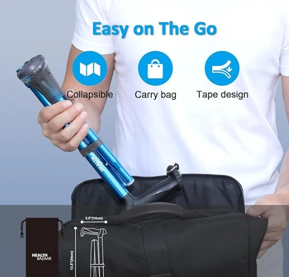 Сгъваем телескопичен ходещ бастун. Всички обмислени дизайни правят носене и съхранение, вече няма главоболие. Цялата базова система максимално увеличава безопасността в ежедневната мобилност.