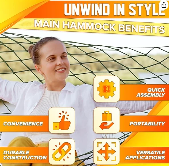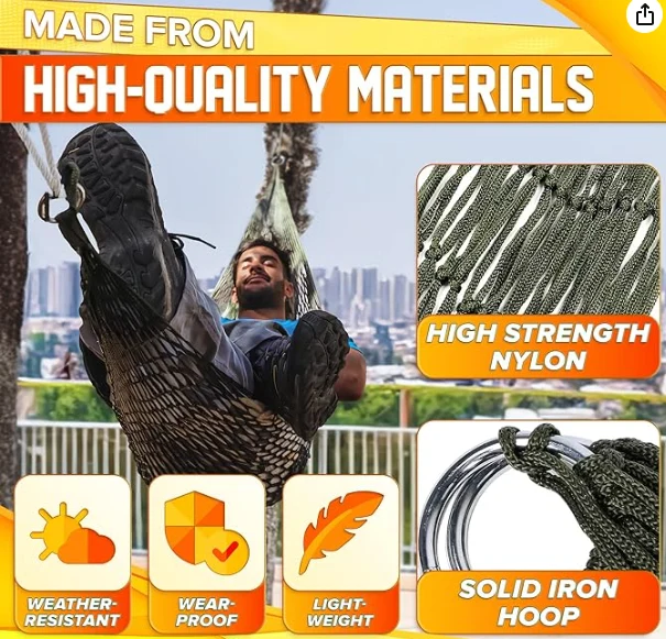Туристически висящ хамак, тези найлонови струни имат голям капацитет за носене на товар. Тези найлонови въжета са идеални за закрито и на открито поради висока издръжливост и устойчиви на износване