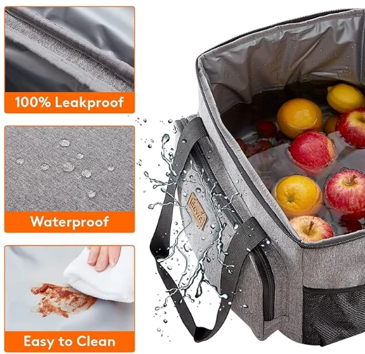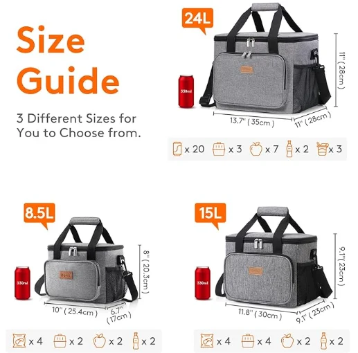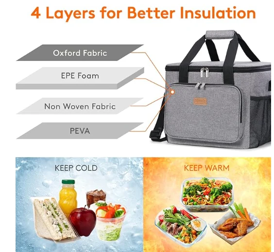 Голям капацитет: Размери - 13,8 "(35см) × 11" (28 см) × 11 "(28 см). Максималният капацитет на обедната кутия за възрастни е 24L и е достатъчно просторен, за да съхранява 40 кутии кокс (330 мл), или обядът ви като сандвичи, салада, закуски, напитки и плодови плодове и нататък.