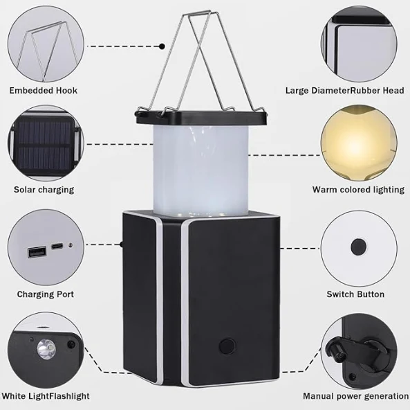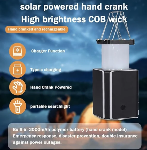 LED слънчева лампа за къмпинг, аварийно къмпинг фенер светлини Ръчно сваляне на електроенергия. Ако нямате зарядно наоколо и няма слънце, този ръчно скандален генератор е идеален за зареждане на светлина.