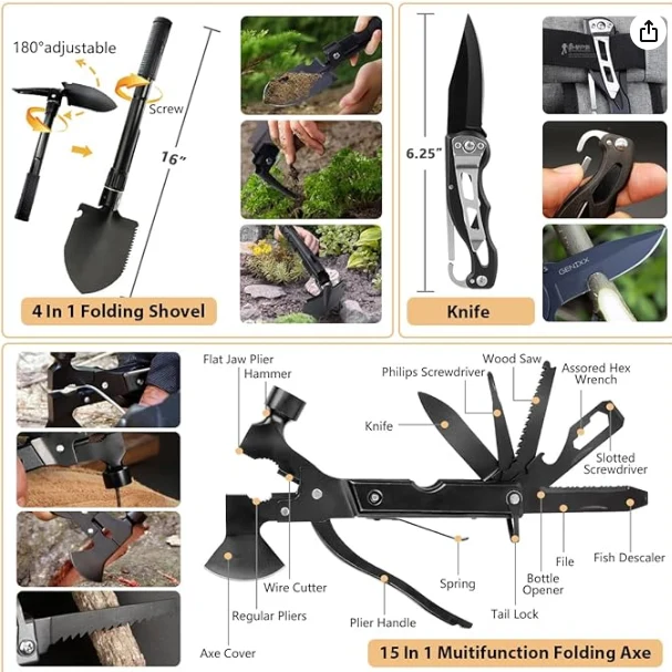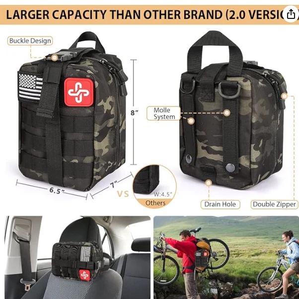 Molle Outdoor Pirst Aid Touch включва общо 250pcs многофункционални инструменти за оцеляване. Той съдържа най -популярната екипировка и инструменти за оцеляване, също и комплект за първа помощ, който е достатъчно за лечение на семейство или група приятели при спешни обстоятелства.