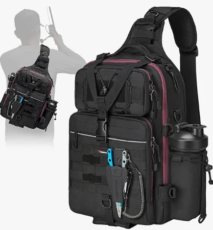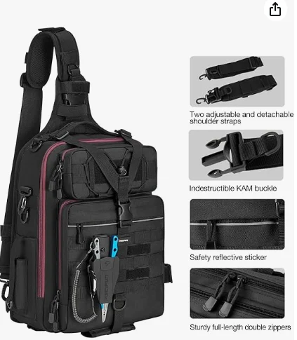 Разглобяемите презрамки улесняват използването на тази чанта като чанта за рамо на прашка, раница, чанта, гърди, торбичка за риболов или чанта за пътуване. С два колана на пръта, които да задържат вашите пръти, основната дължина на каишката може да бъде удължена до 51,2 '', докато асоциираната каишка може да бъде разширена до 36,2 ''