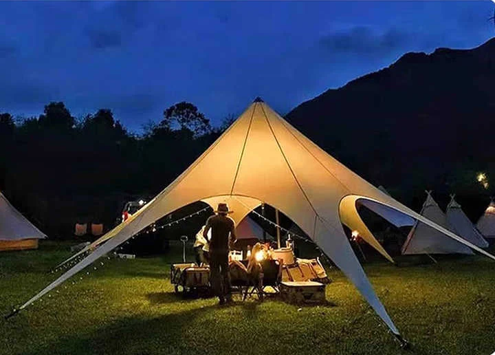 Sunshade Waterproof Големи палатки на открито, със снежна пола дизайн, подходящ за всеки сезон, пролет, лято, есен, дори в студен зимен ден, предлагайте по -топъл туристически туристически пътувания на открито. Дейности, къмпинг, фестивали, пикници, плажове, риболов, планинско катерене, спортни игри и др. Лесен за инсталиране и пренасяне, много полезен в различни сценарии. Той също може да бъде полезен в случай на бедствие.