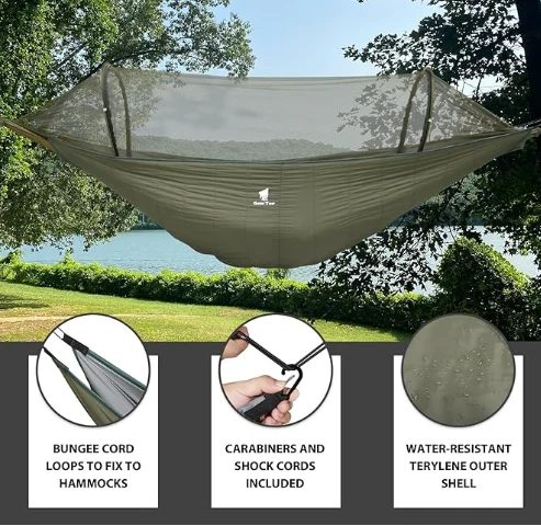 Този хамак юрган може да се превърне в компактен размер за раница, чудесен за къмпинг, туризъм, пътуване