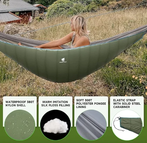 Хамак юрган от 3 - 4 сезона е идеален за температури от 41 ° F до 68 ° F; Той е оформен идеално, за да се побере в окачването на хамак, който ви предпазва от вятъра и ви държи горещо пашкули.